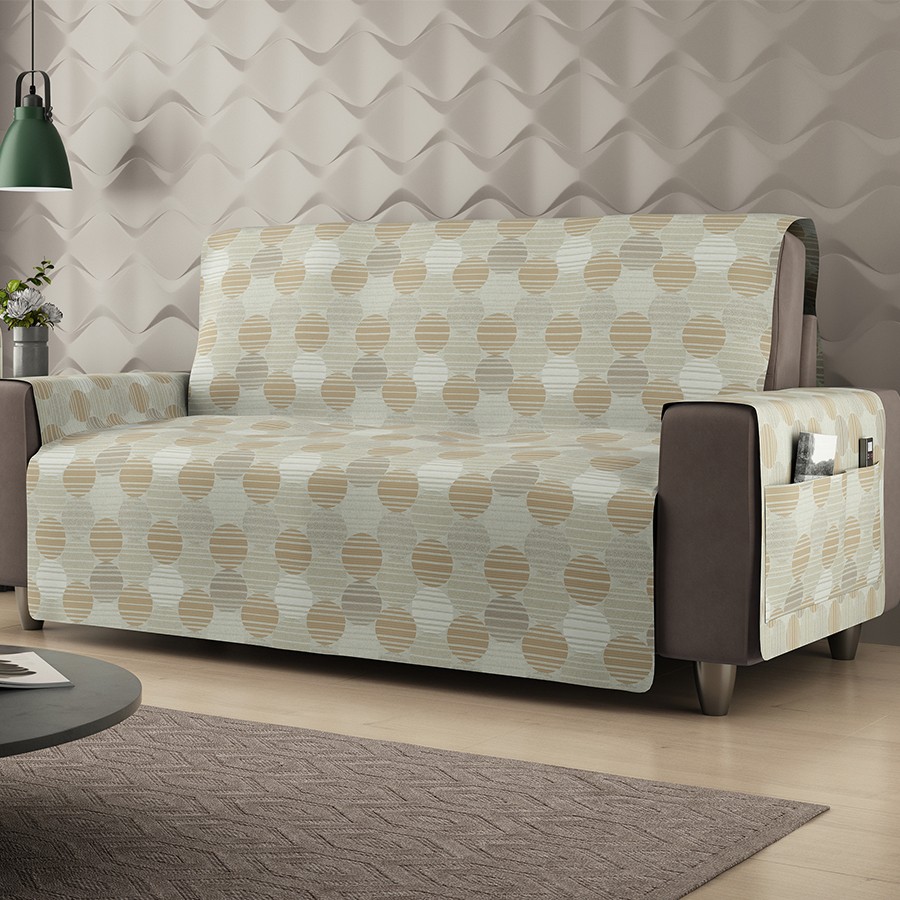 Protetor para sofá de 3 lugares, confeccionado no tecido jacquard com 5 opções de padronagem. As medidas são adequadas e vestem por completo os assentos, com um ótimo acabamento e garantindo a proteção do sofá. Possui bolsos laterais, ideais para armazenamento de revistas e controles remotos. Bom gosto e qualidade para o ambiente.