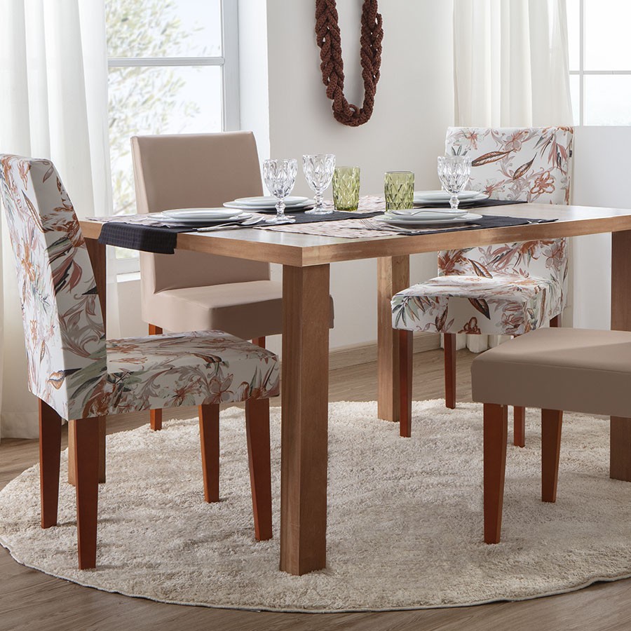 Inove e modernize seu ambiente com as capas de cadeira da Adomes Decoração. Cores e estampas coordenadas para facilitar na combinação. Se adéqua em diversos modelos de cadeira. Auxilia na conservação e limpeza da sua cadeira.